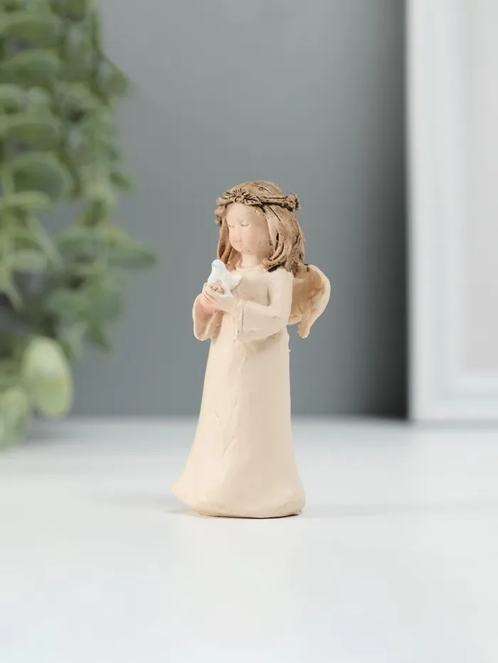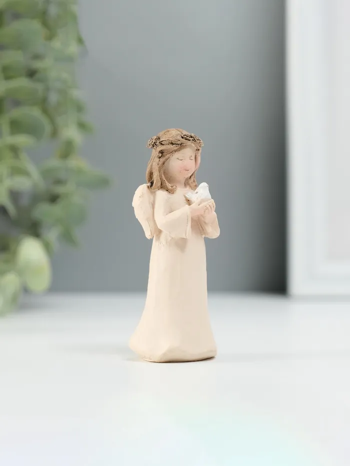 Сувенир полистоун "Ангел в бежевом платье с веночком на голове" МИКС 7,5х3,3х3 см — Характеристики