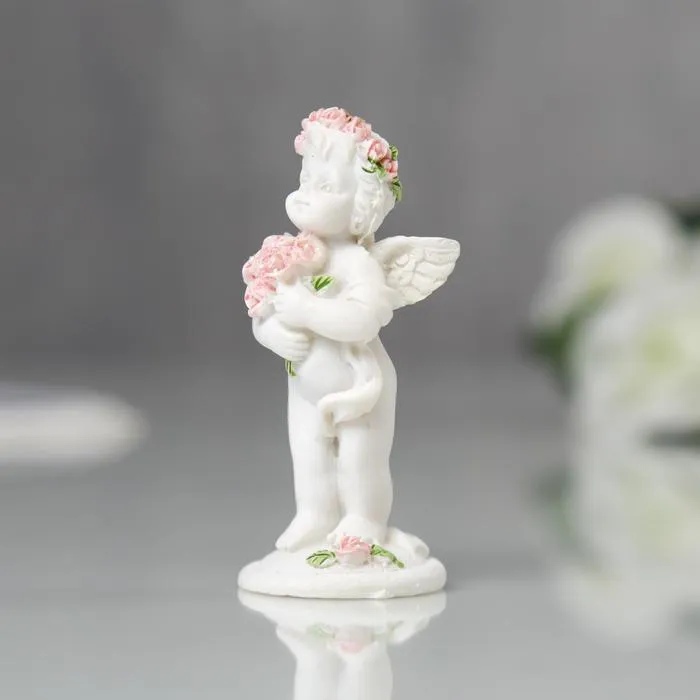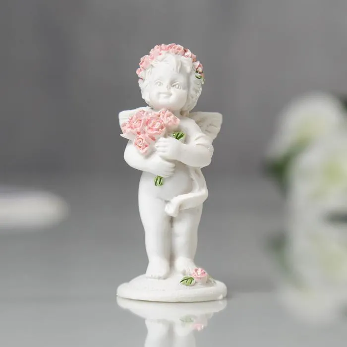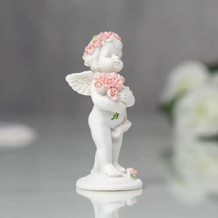 Сувенир полистоун "Ангел в розовом веночке с букетиком" МИКС 6,8х2,8х3 см — Характеристики