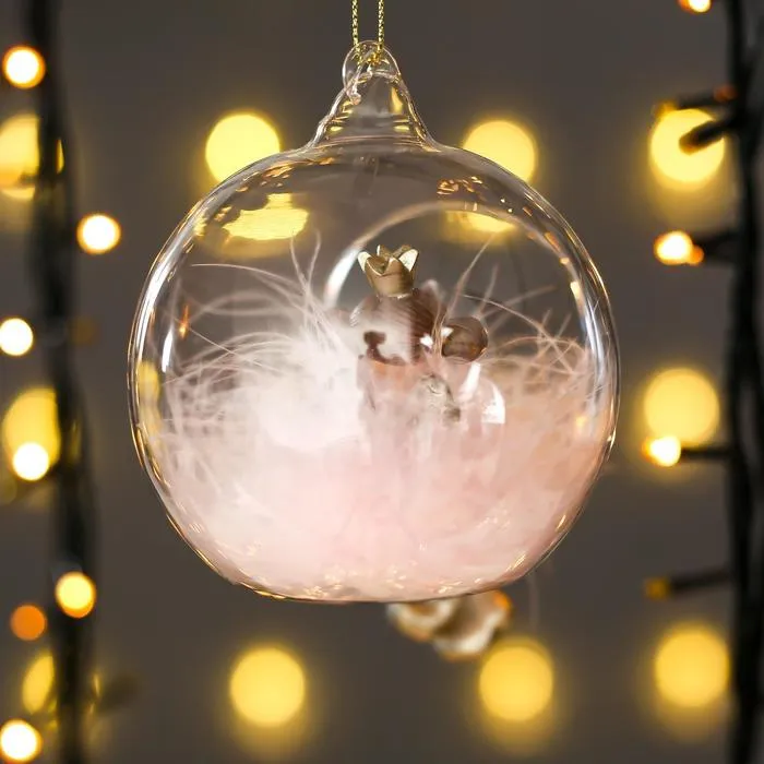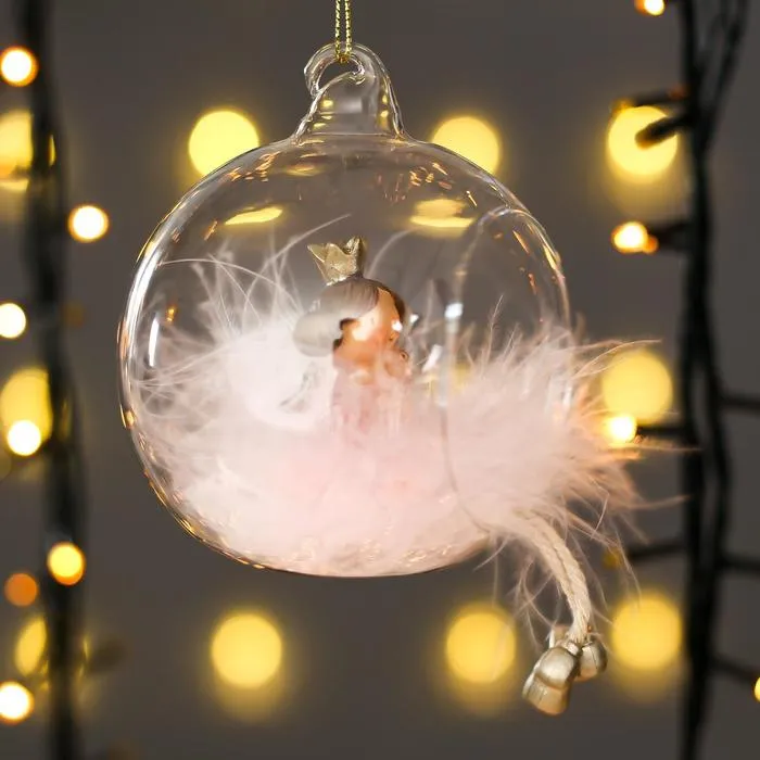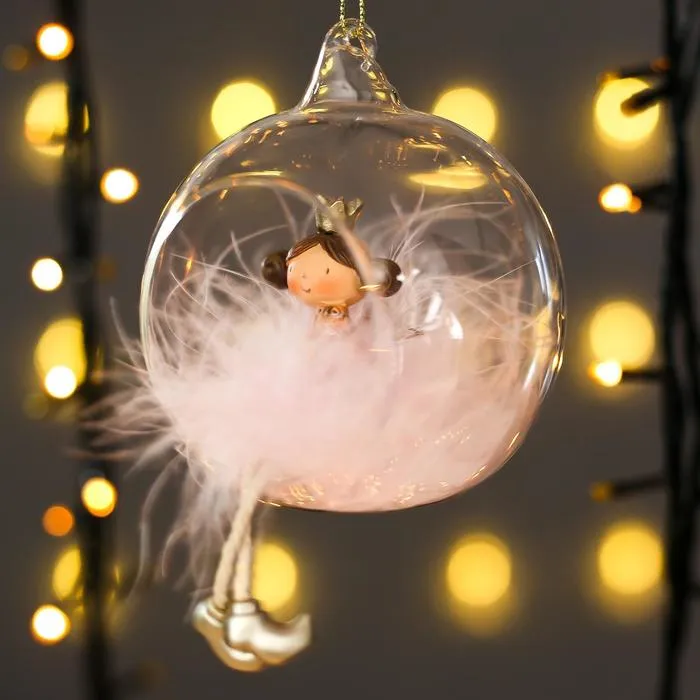 Сувенир полистоун "Ангелочек-принцесса, розовый пушок, в шарике" 9х8х10 см — Характеристики