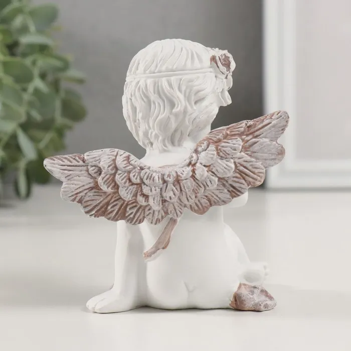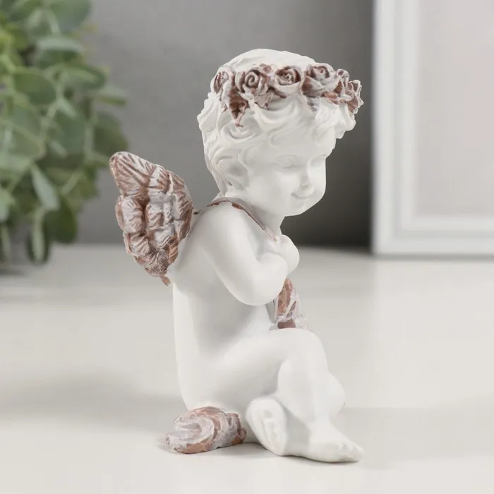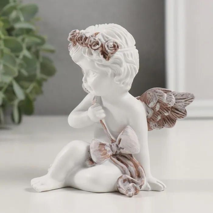 Сувенир полистоун "Ангелочек с бантом на плече, в венке из роз" кофейный венок 9х7х10,5 см 1032476 — Характеристики