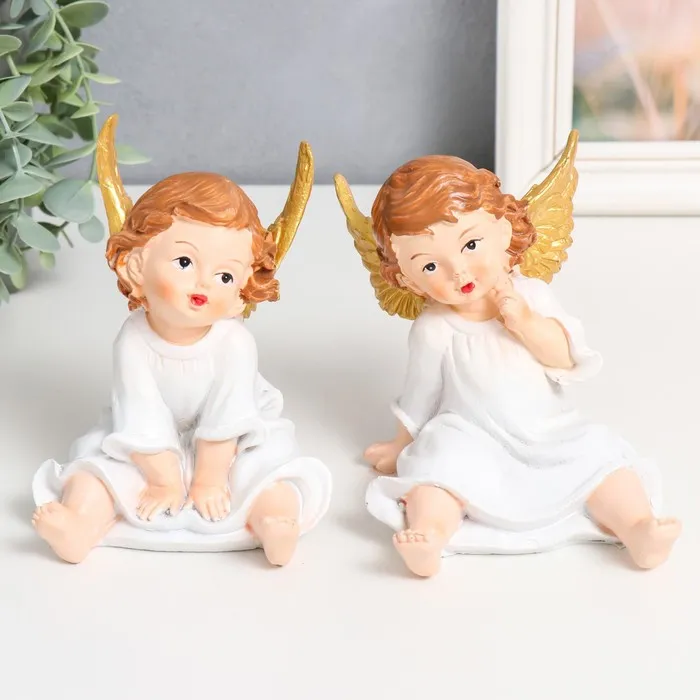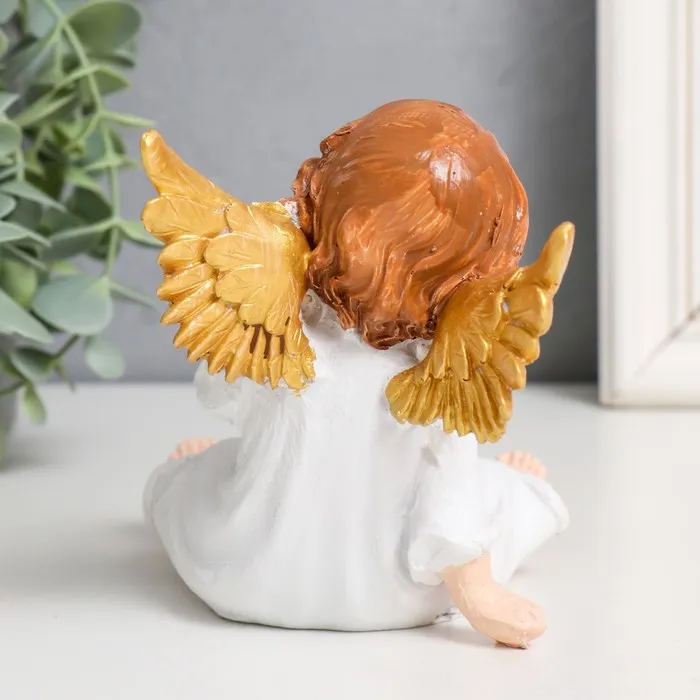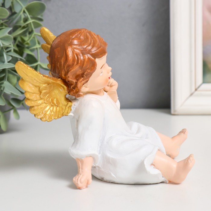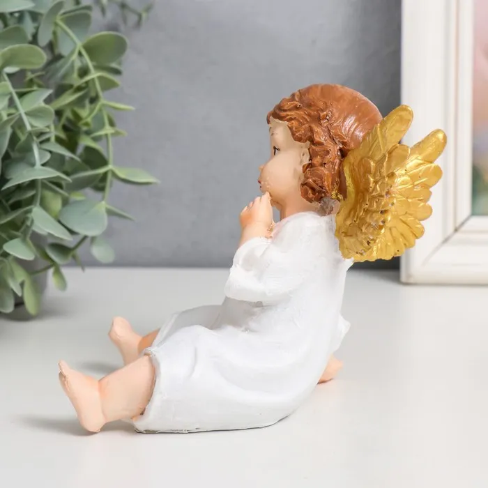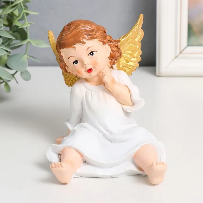 Сувенир полистоун "Ангелочек в белом платье, сидит" золотые крылья МИКС 10х9х13 см — Характеристики