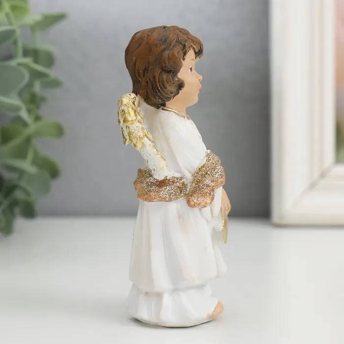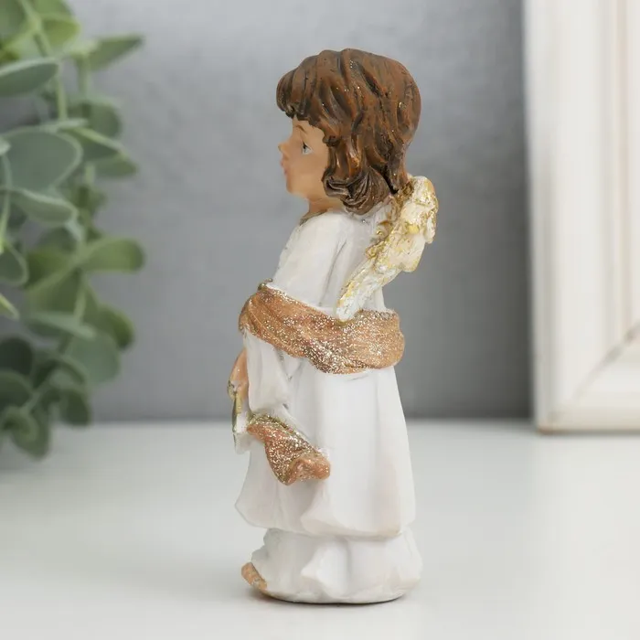 Сувенир полистоун "Ангелочек в бежевом платье, со звёздочкой" золотые крылья 3,5х5х10 см — Характеристики