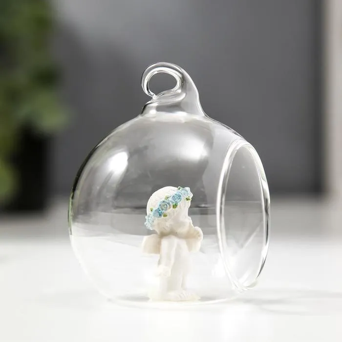 Сувенир полистоун "Ангелок в шаре" голубой веночек, 6,7х5,5х6,2 см — Характеристики