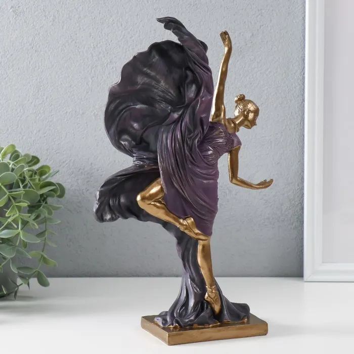 Сувенир полистоун "Балерина в летящем фиолетовом платье" бронза 19х7,5х30,5 см — Характеристики