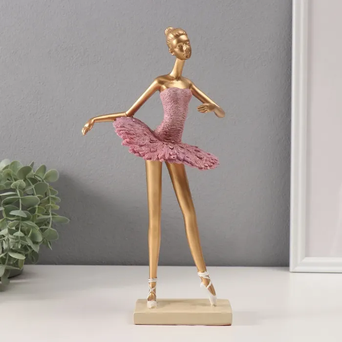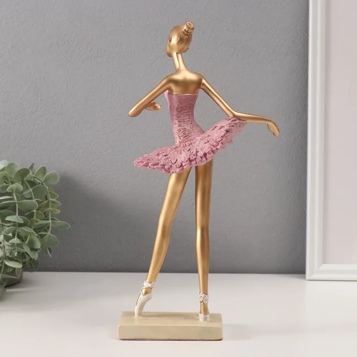Сувенир полистоун "Балерина в стойке в розовой пачке" розовый с золотом 5,5х14х31 см — Характеристики