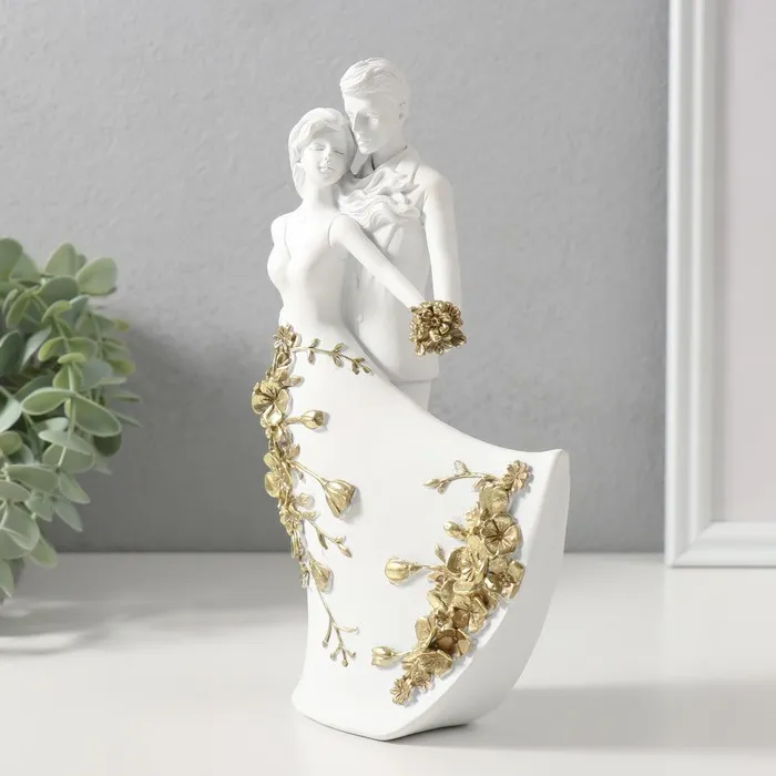 Сувенир полистоун "Белоснежная пара с золотыми цветами" 12х5,5х20,5 см — Характеристики