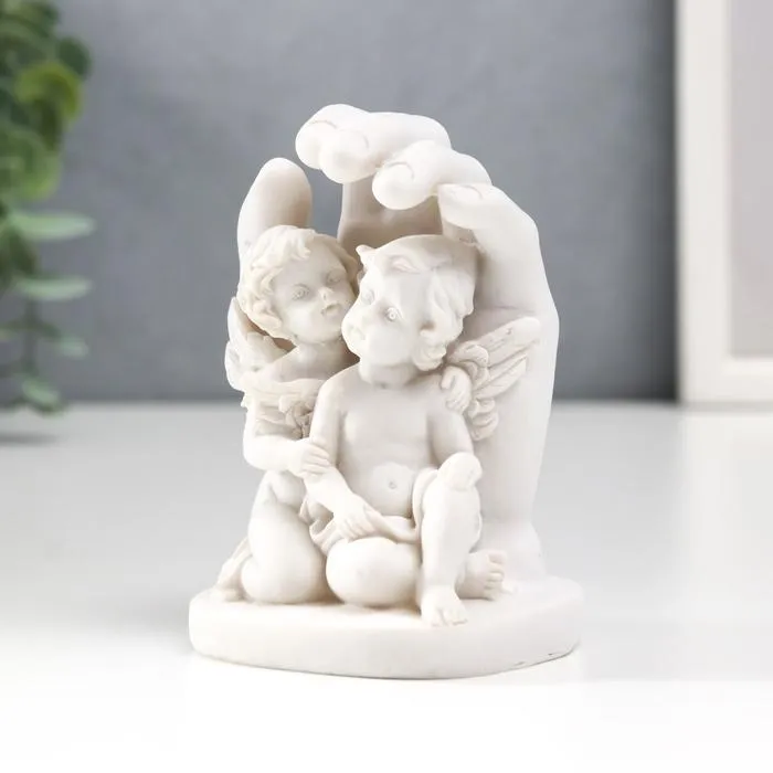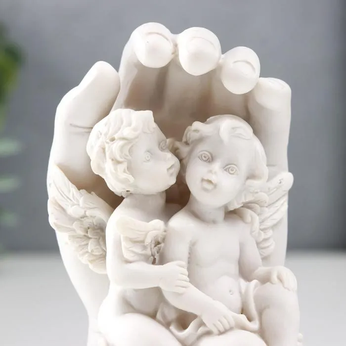 Сувенир полистоун "Белоснежные ангелы прислонились к ладони" 8,7х6х6 см — Характеристики