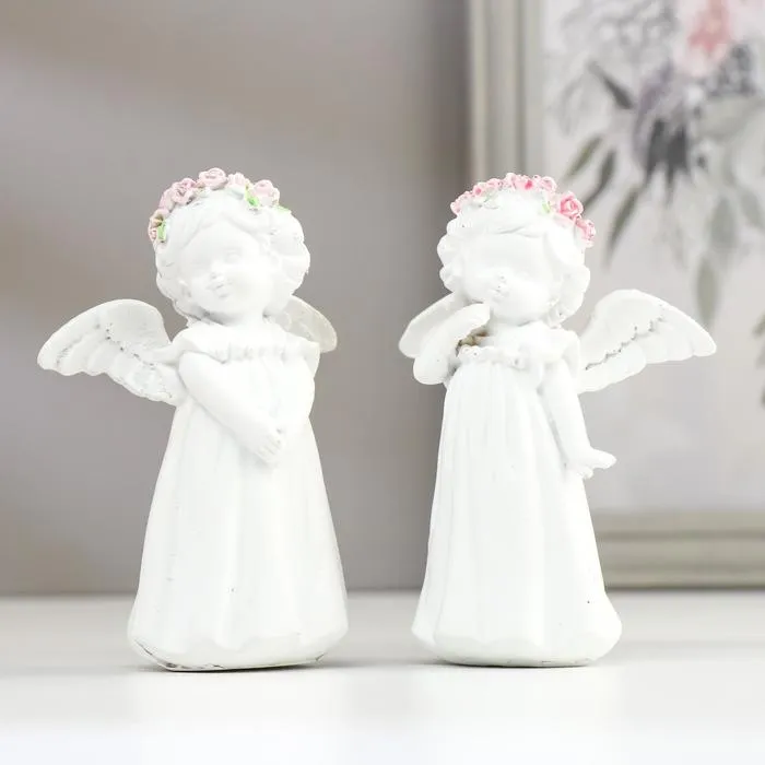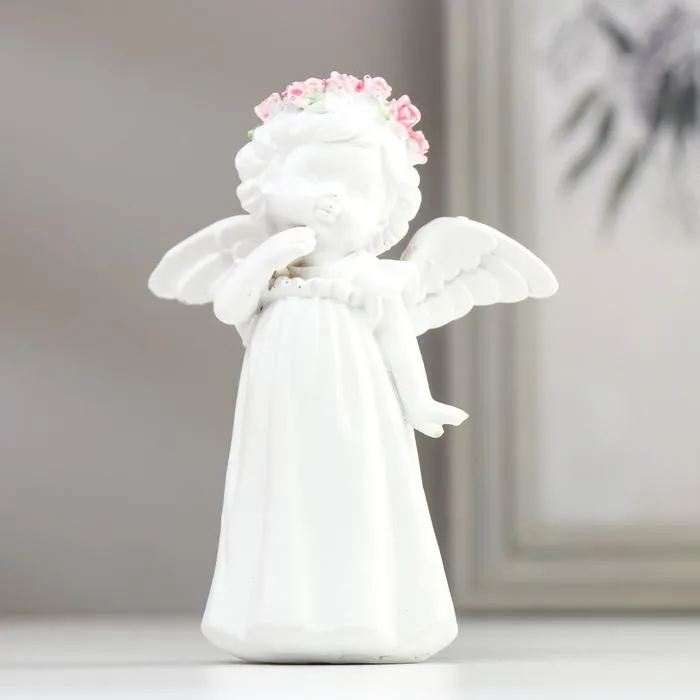 Сувенир полистоун "Белоснежный ангел-девочка в веночке застенчивая" МИКС 11х8,5х5 см — Характеристики