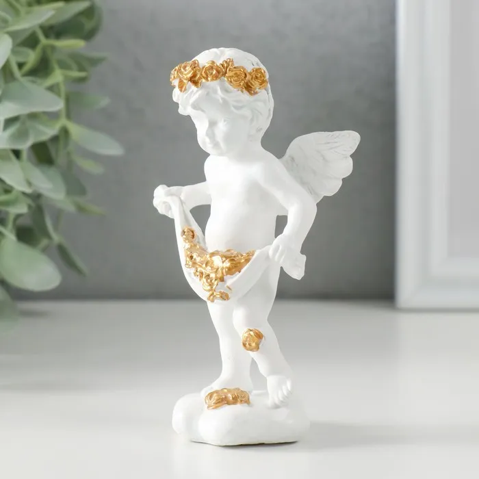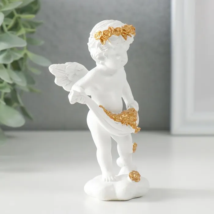 Сувенир полистоун "Белоснежный ангел рассыпает золотые розочки" 6,5х4х11 см — Характеристики