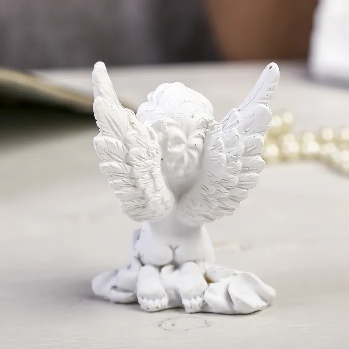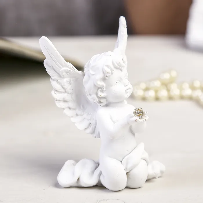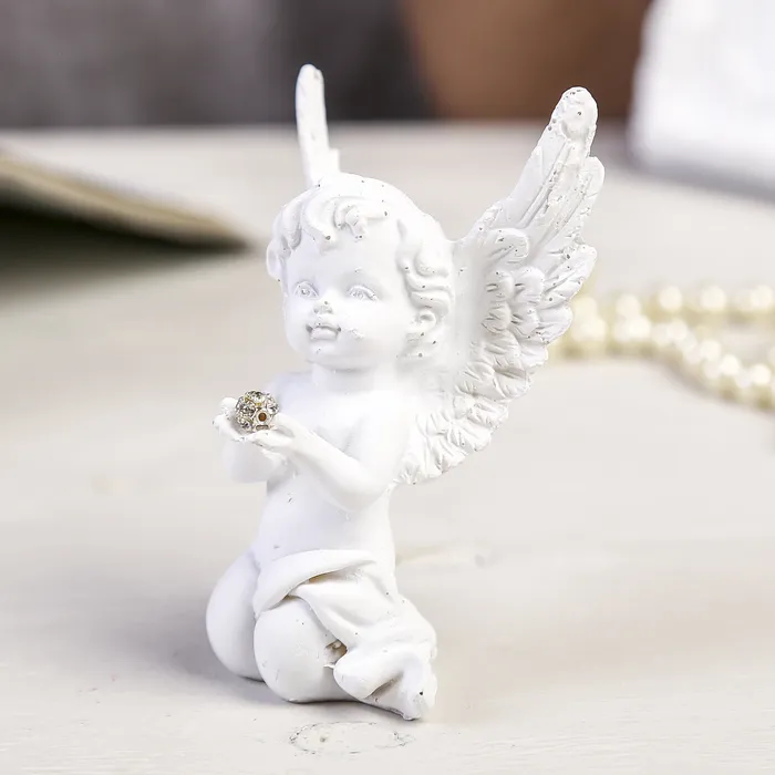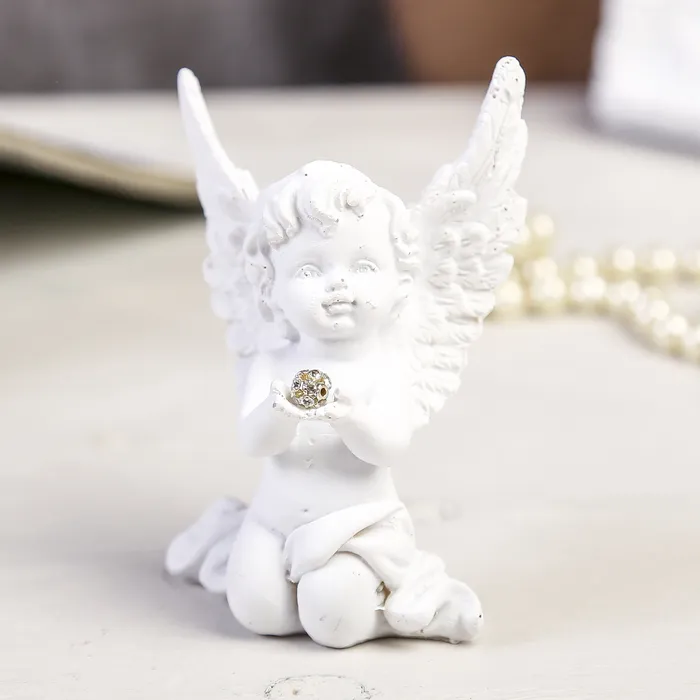 Сувенир полистоун "Белоснежный ангел с шариком из страз сидит" МИКС 8х6х2,5 см — Характеристики