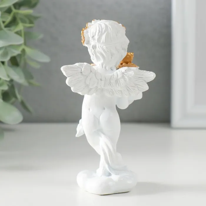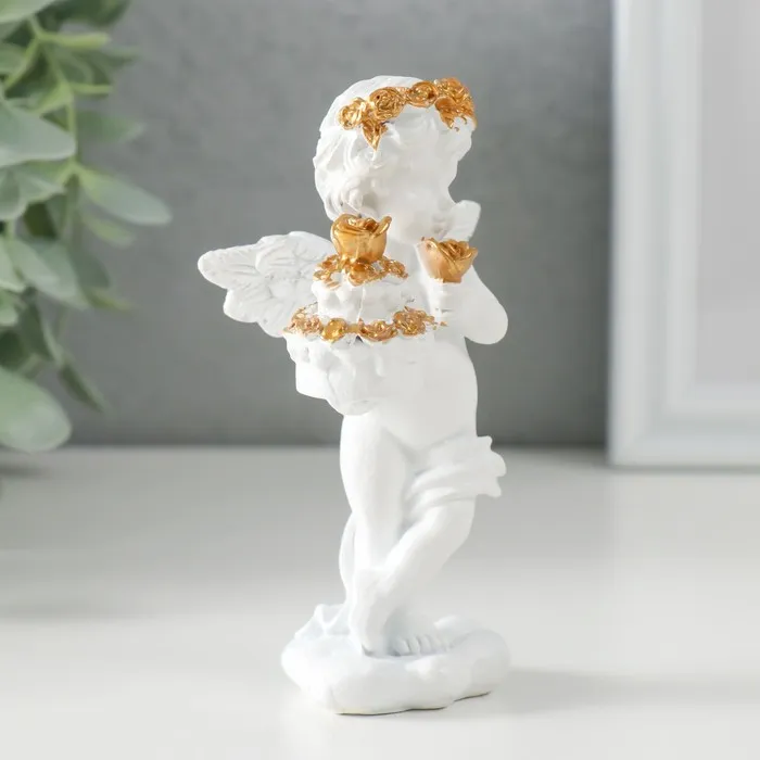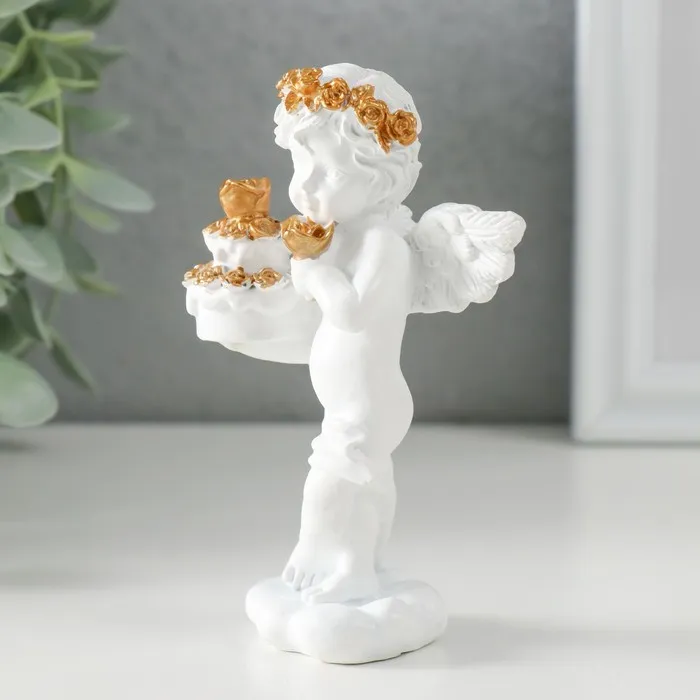 Сувенир полистоун "Белоснежный ангел с тортом украшенным розочками" 6х4,5х11 см — Характеристики