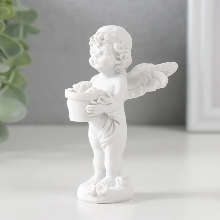 Сувенир полистоун "Белоснежный ангел с цветком в горшке" 9,7х6х6,5 см — Характеристики
