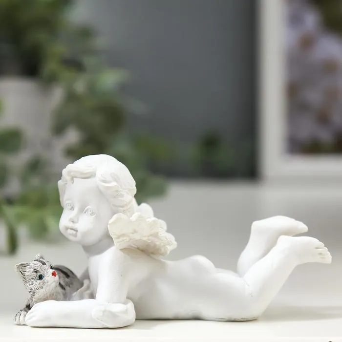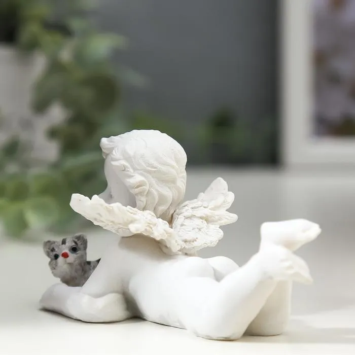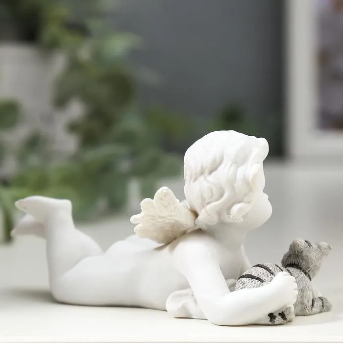 Сувенир полистоун "Белоснежный ангел с цветным полосатым котиком" 5х4,5х9,6 см — Характеристики