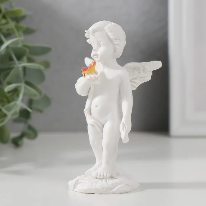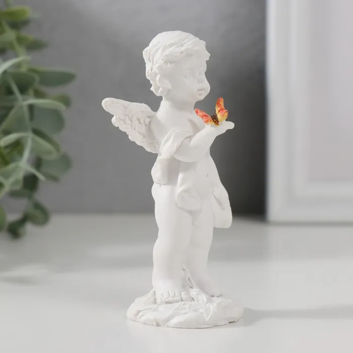 Сувенир полистоун "Белоснежный ангел стоит с цветной бабочкой" 9х3,5х4,8 см — Характеристики