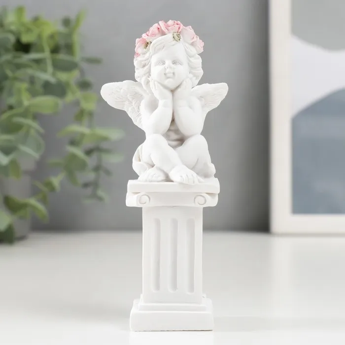 Сувенир полистоун "Белоснежный ангел в розовом венке на колонне" МИКС 10,8х4,7х4,7 см — Характеристики