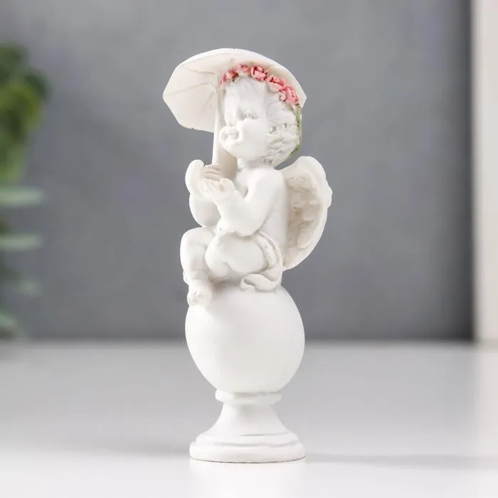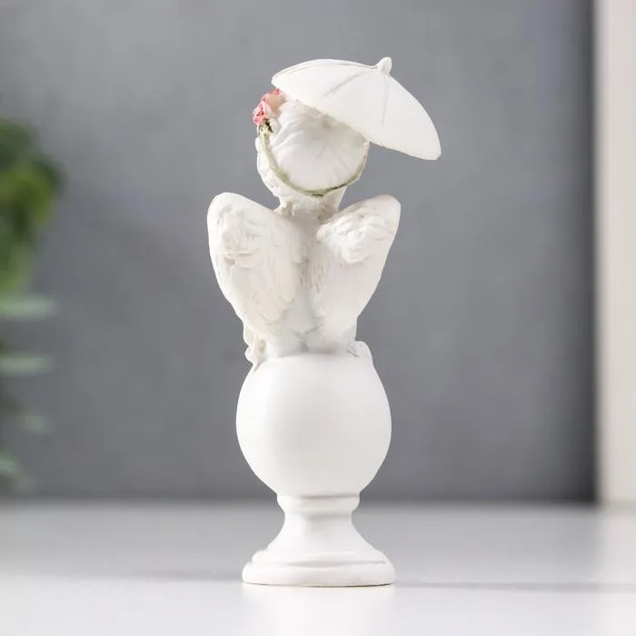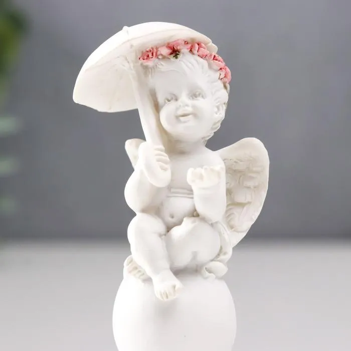 Сувенир полистоун "Белоснежный ангел в розовом венке, на шаре под зонтом" 8,5х3,8х3 см — Характеристики