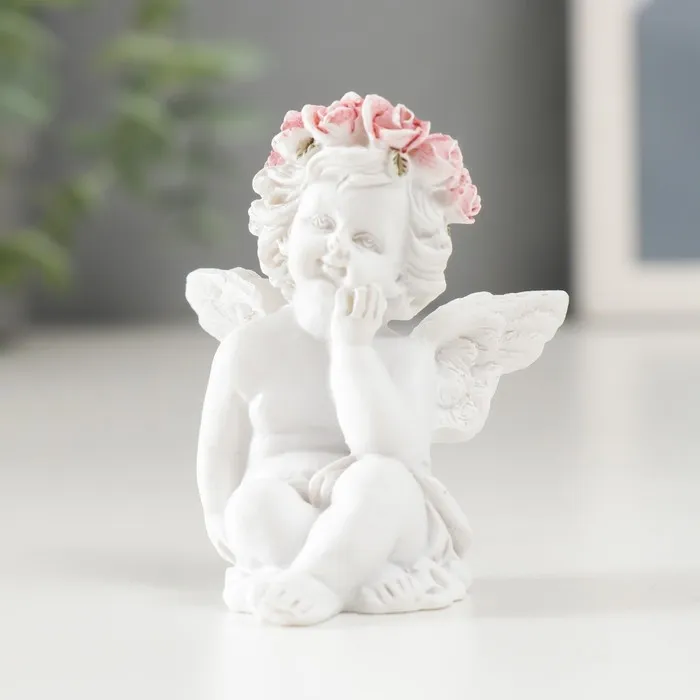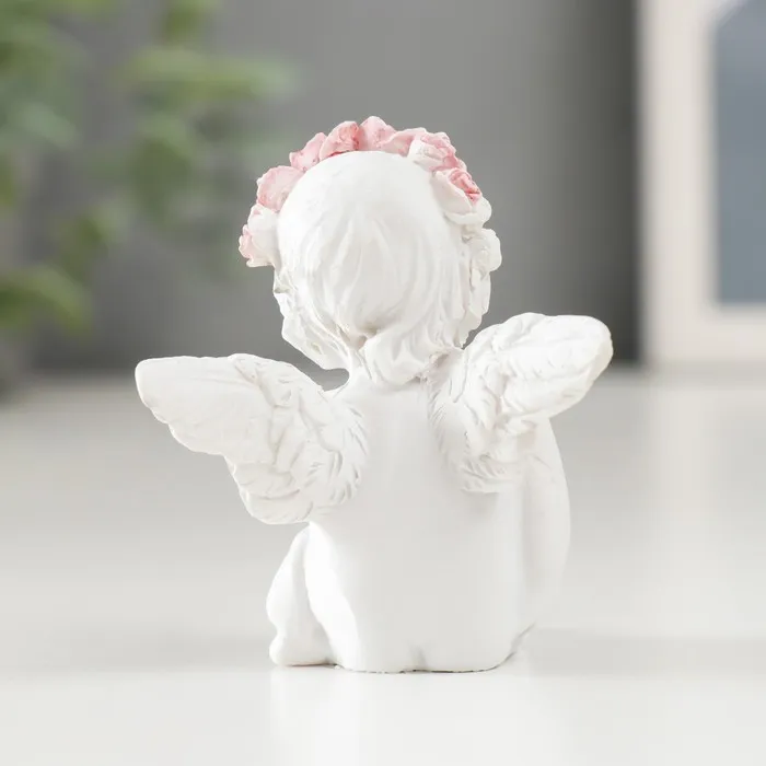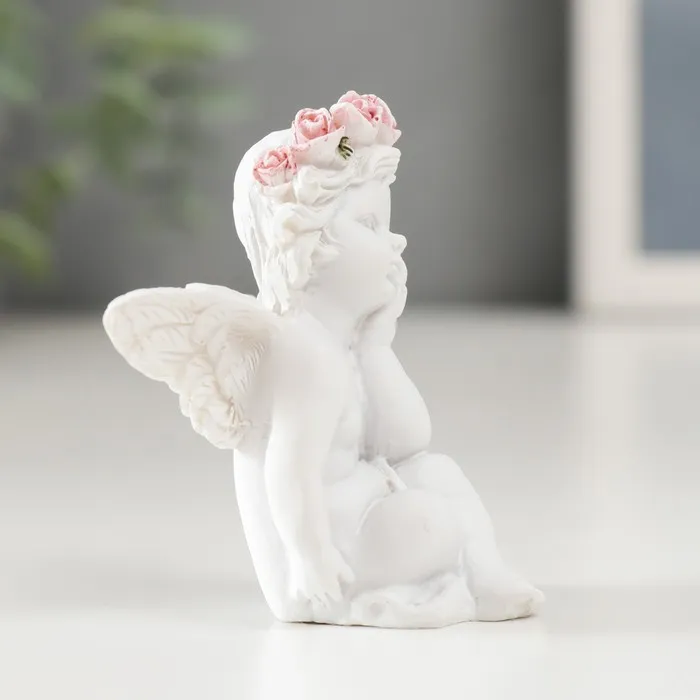 Сувенир полистоун "Белоснежный ангел в розовом веночке сидит" МИКС 6х3,5х4,9 см — Характеристики