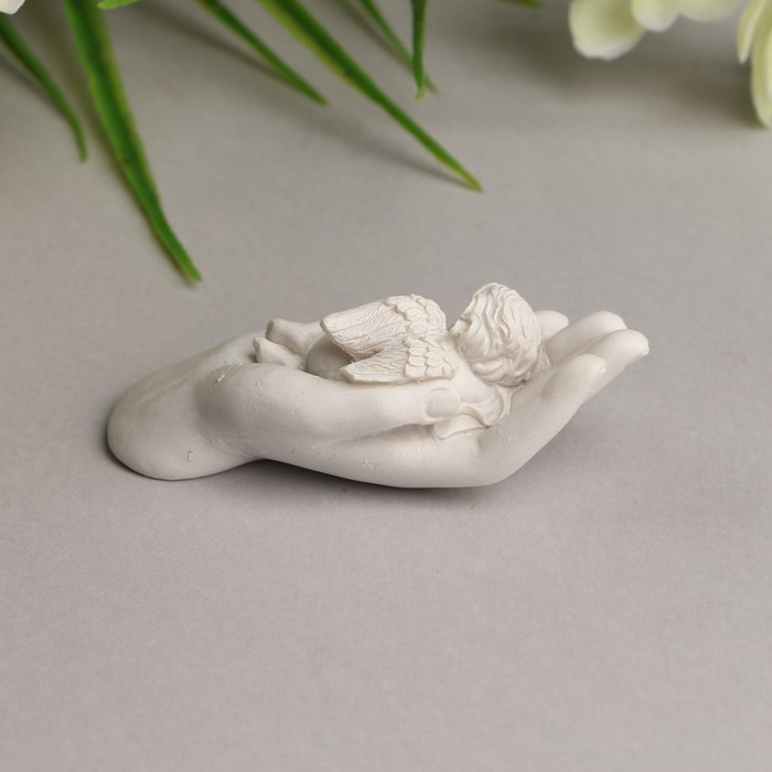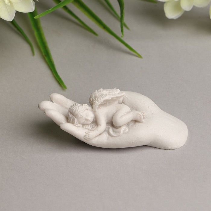 Сувенир полистоун "Белоснежный ангелочек спит на ладони" 2,5х7,5х3 см — Характеристики