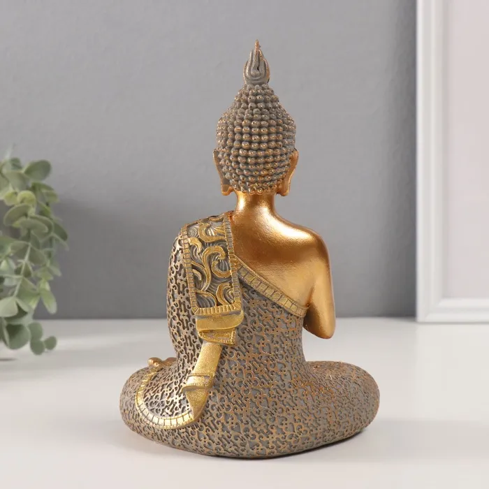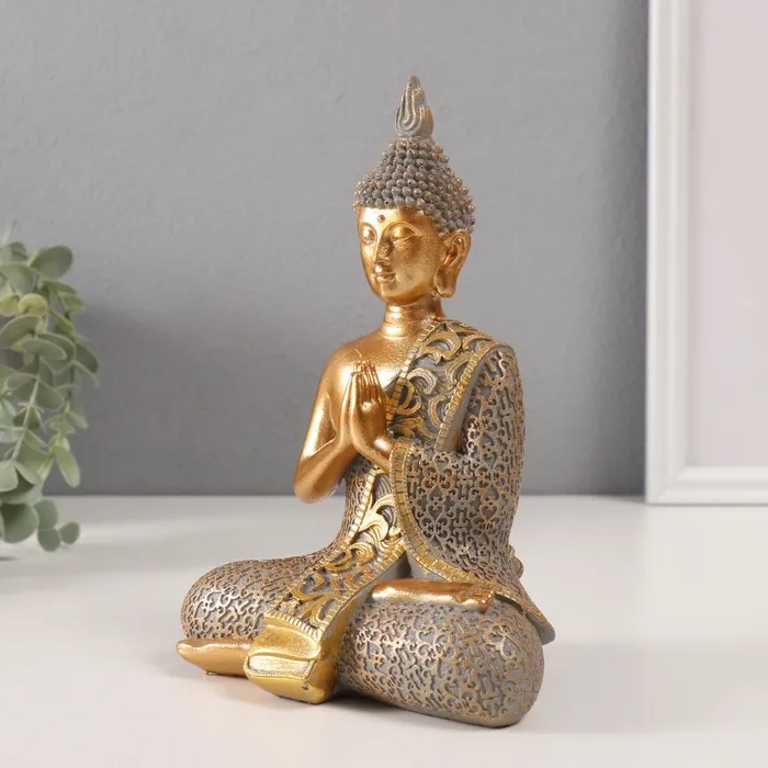 Сувенир полистоун "Будда - Мудра Намаскара" золотой 9,5х13,5х19,5 см — Характеристики