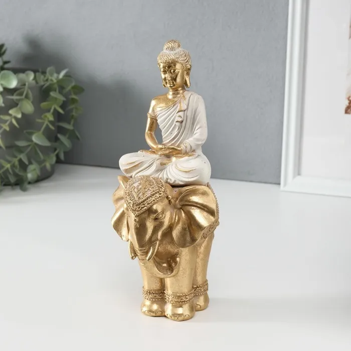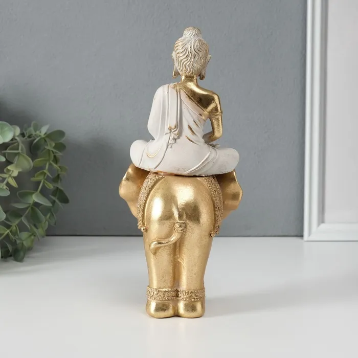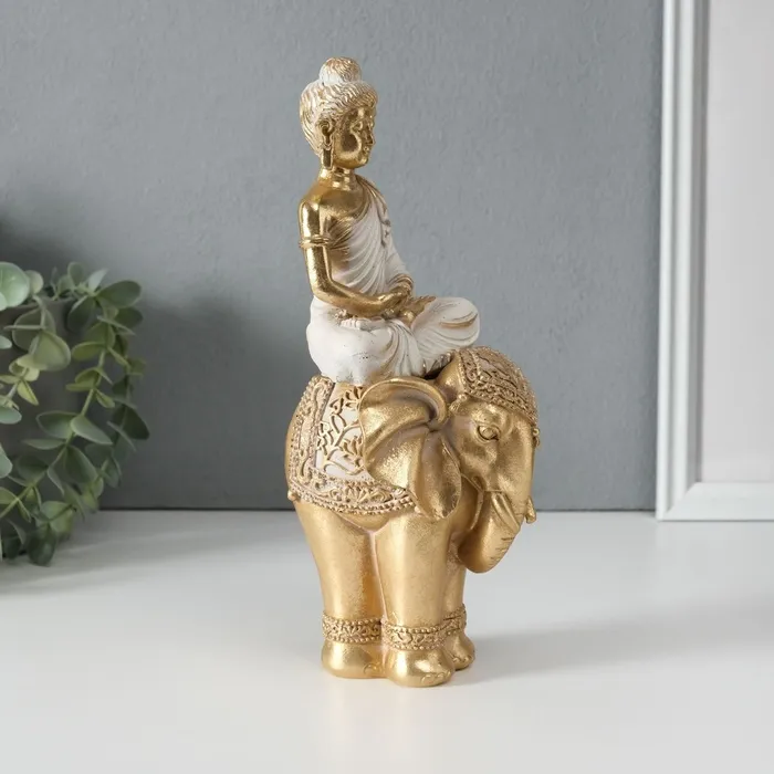 Сувенир полистоун "Будда Шакьямуни на золотом слоне" 11х10х25 см — Характеристики