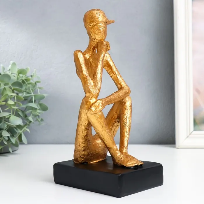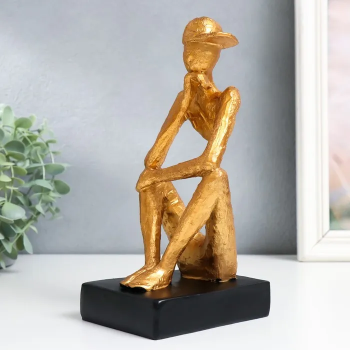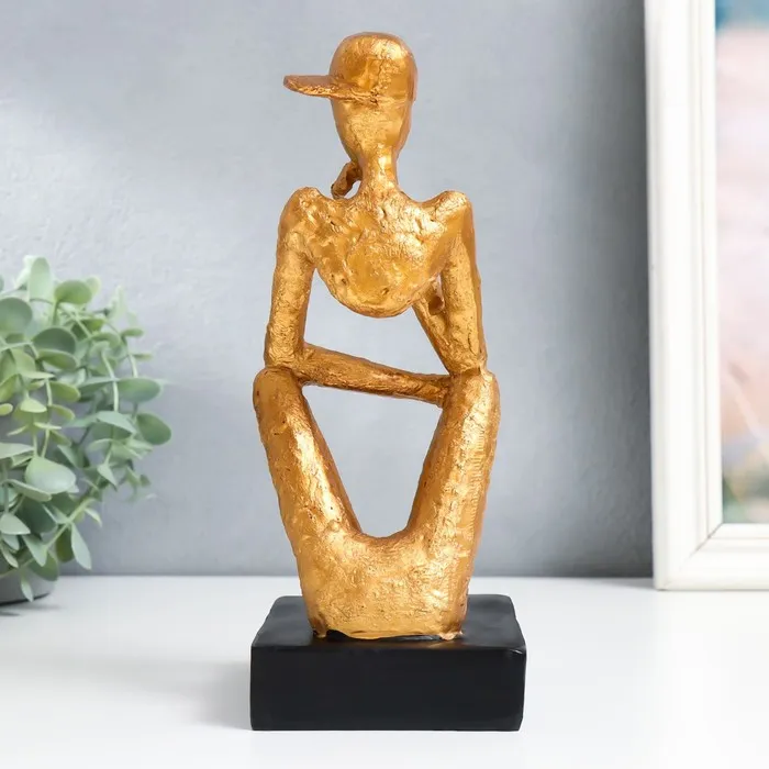 Сувенир полистоун "Человек в кепке. Размышления" золото 12х9х23 см — Характеристики