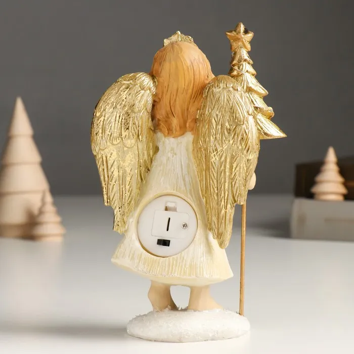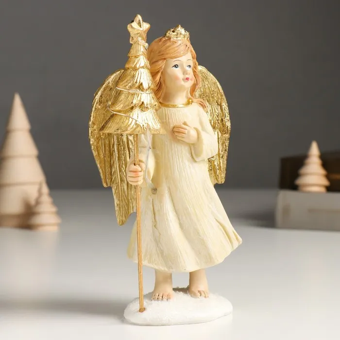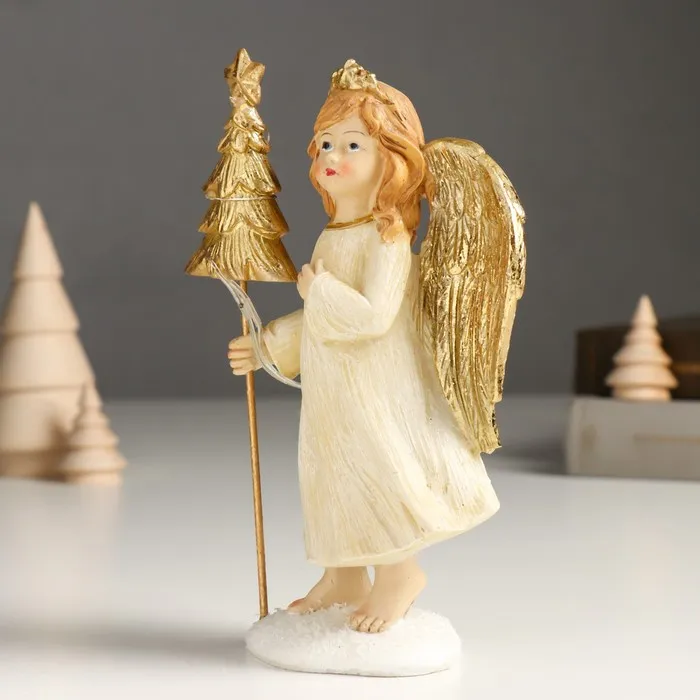 Сувенир полистоун "Девочка-ангел в бежевом платье с ёлочкой" золото 6х9х17 см — Характеристики