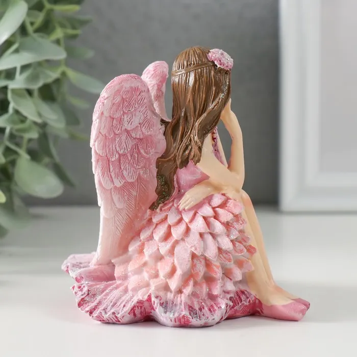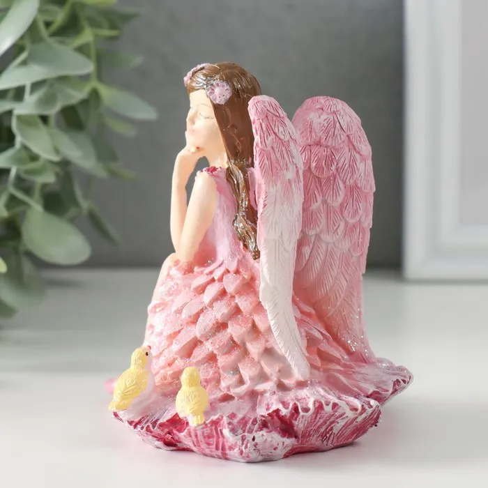 Сувенир полистоун "Девочка-ангел в розовом платье с птичками" розовые крылья 10х8,5х10 см — Характеристики