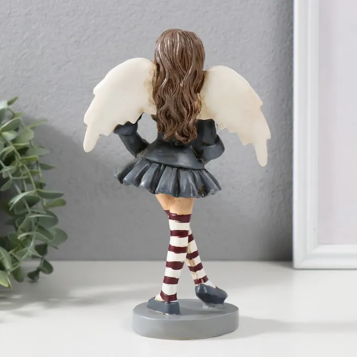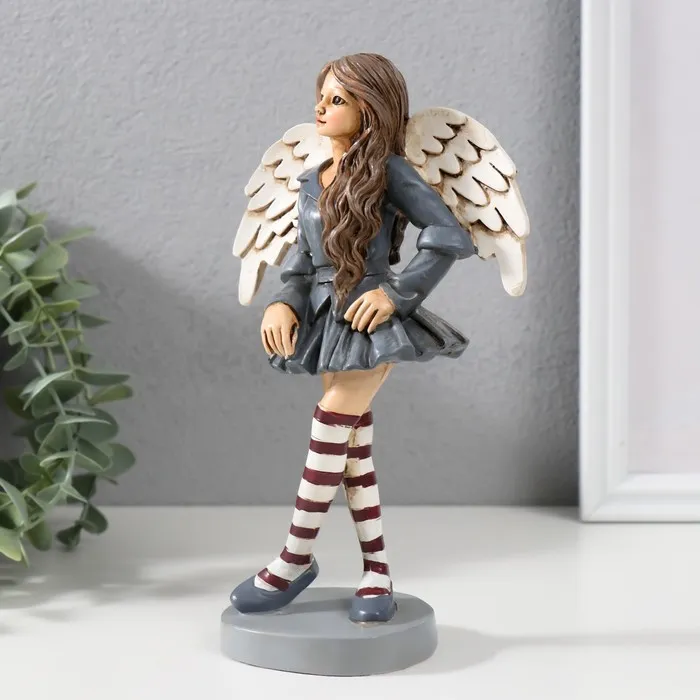 Сувенир полистоун "Девочка-ангел в сером платье и полосатых гетрах" 12х6,5х19,5 см — Характеристики