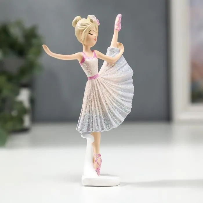 Сувенир полистоун "Девочка-балерина в бело-голубом платье и розовых пуантах" 13х3х8 см — Характеристики