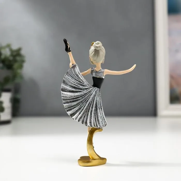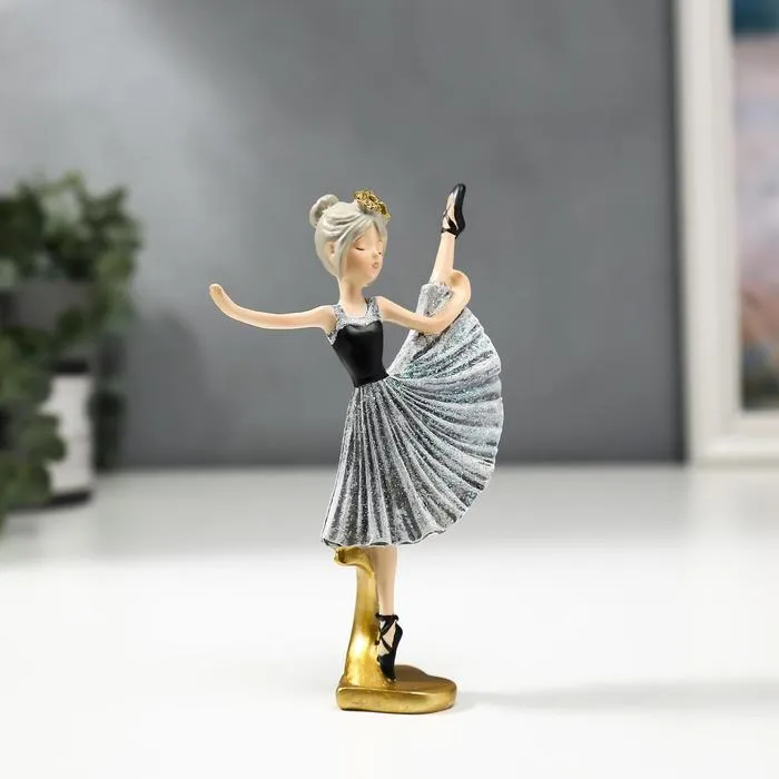 Сувенир полистоун "Девочка-балерина в серо-чёрном платье и чёрных пуантах" 13х3х8 см — Характеристики