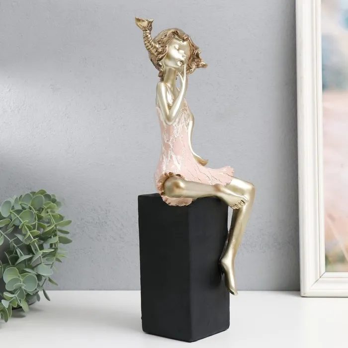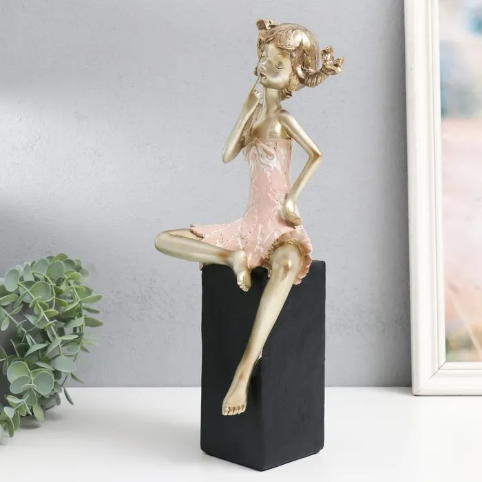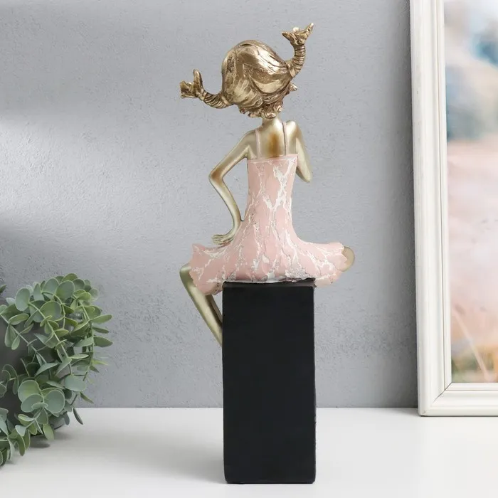 Сувенир полистоун "Девочка на кубе, с косичками" бело-золотой 15х10х37 см — Характеристики