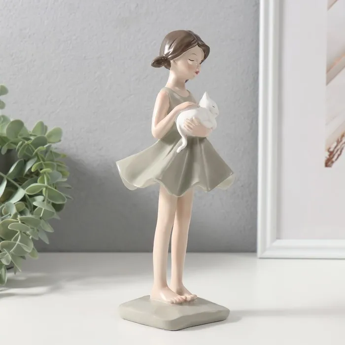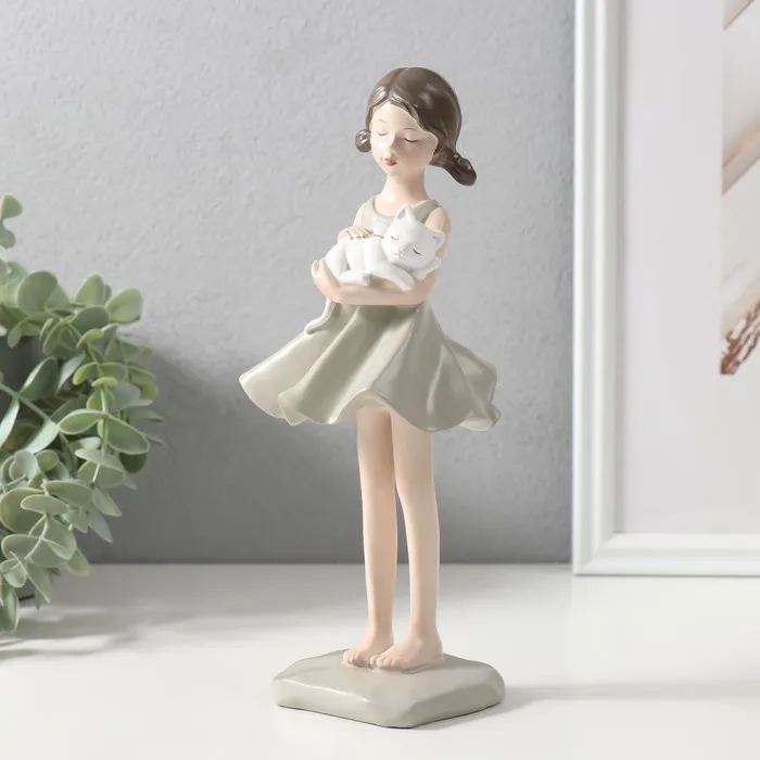 Сувенир полистоун "Девочка в платье с кошкой на руках" 9,9х8,7х23,1 см — Характеристики