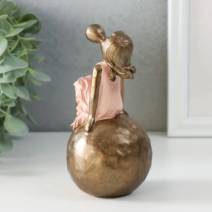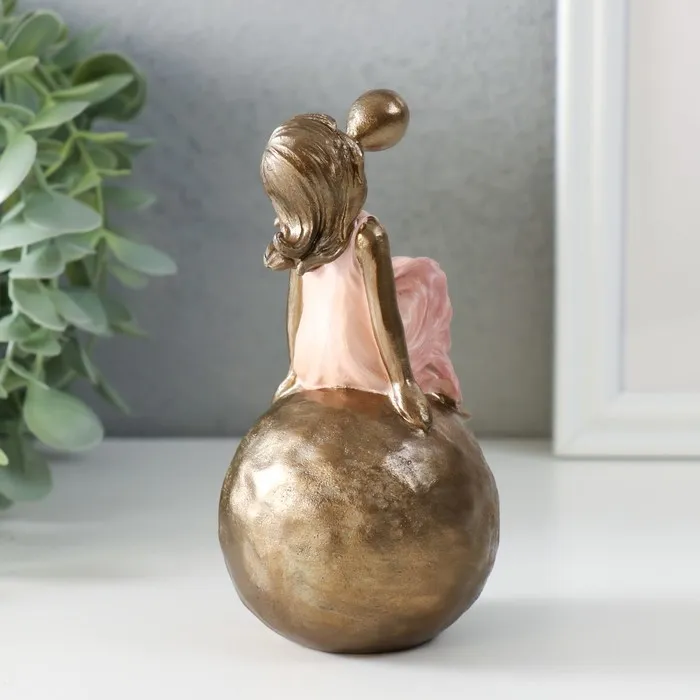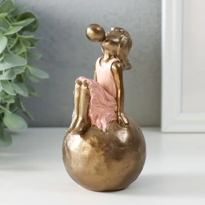 Сувенир полистоун "Девочка в розовом платье, надувает пузырь, на шаре" бронза 7х7х13,5 см