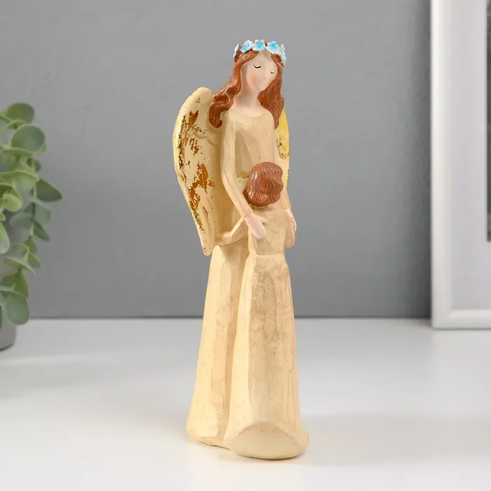 Сувенир полистоун "Девушка-ангел в голубом венке с ребенком" 6х12х20,5 см — Характеристики