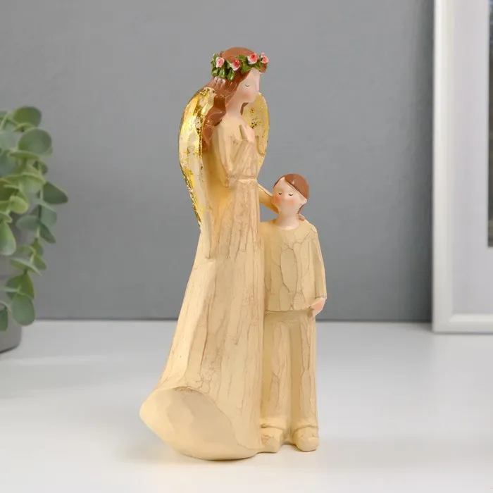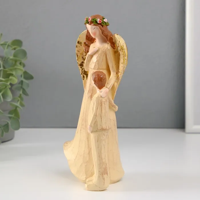Сувенир полистоун "Девушка-ангел в зеленом венке с ребенком" 6х12х20,5 см — Характеристики