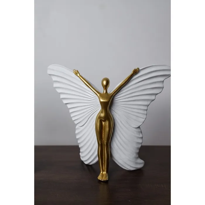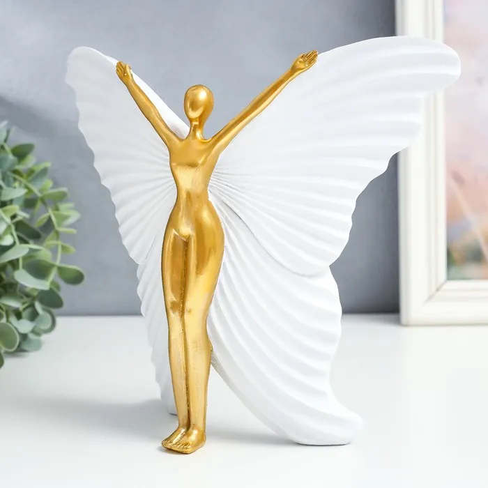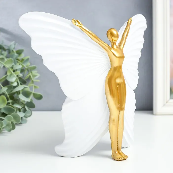 Сувенир полистоун "Девушка-бабочка" белый с золотом 25х8х20,5 см — Характеристики