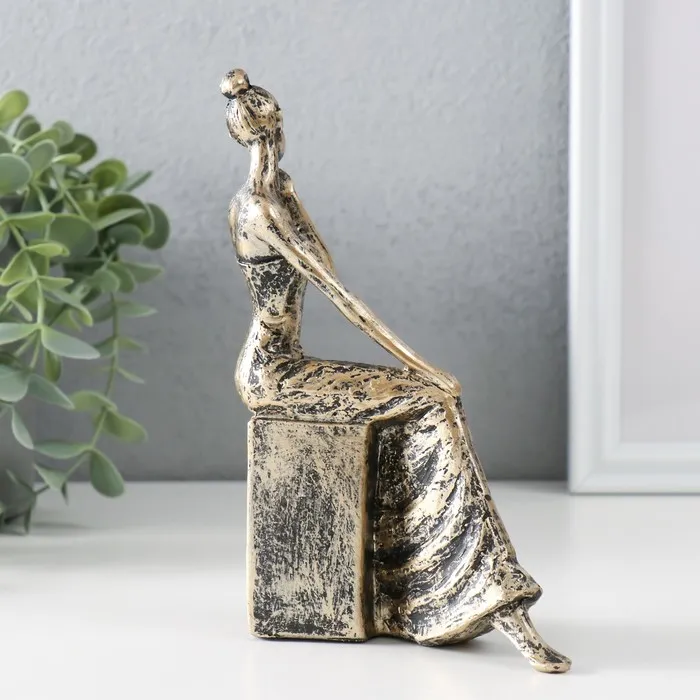 Сувенир полистоун "Девушка на камне" под бронзу 12,5х5х17 см — Характеристики
