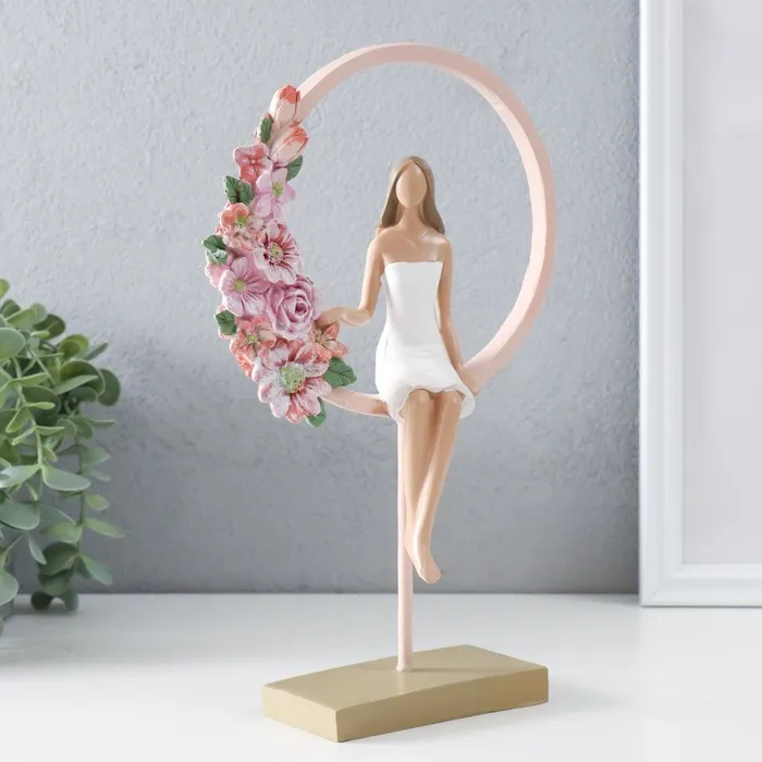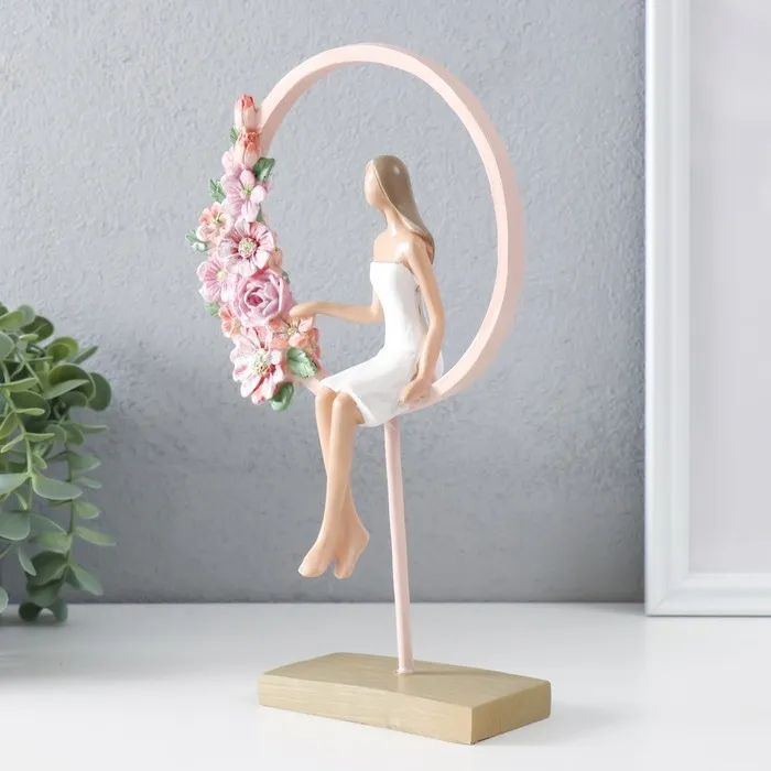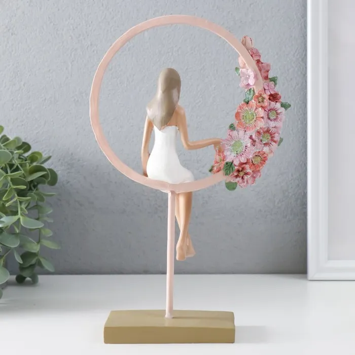 Сувенир полистоун "Девушка сидит в розовом кольце с цветами" 16х6х25,5 см — Характеристики