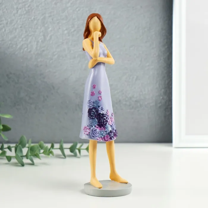 Сувенир полистоун "Девушка в сиреневом платье с цветами" 7,5х7х23,5 см — Характеристики