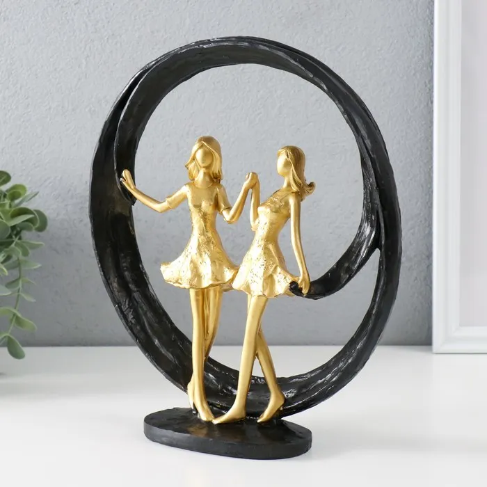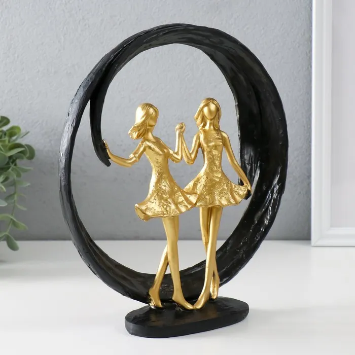 Сувенир полистоун "Две подружки. Абстракция" золото с чёрным 24,5х7х26,5 см — Характеристики