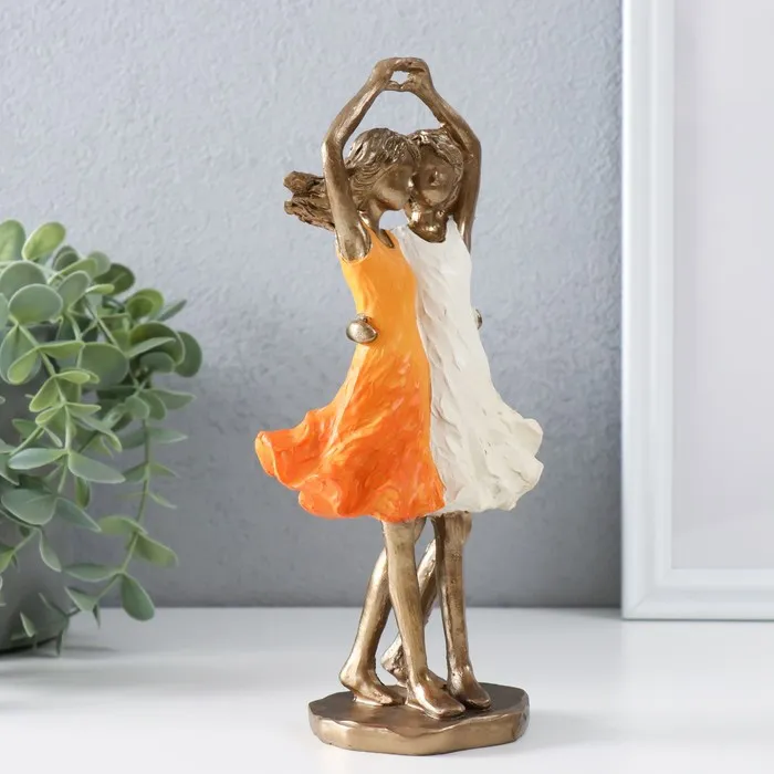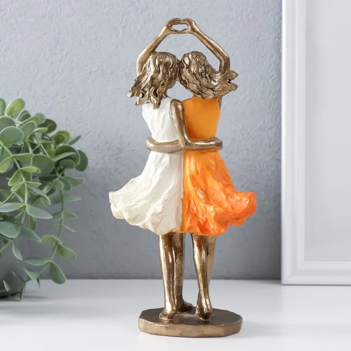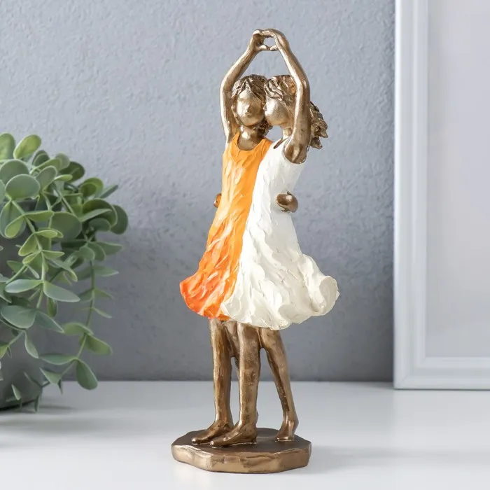 Сувенир полистоун "Две сестры" бронза, оранжево-белый 10,5х6,5х21,5 см — Характеристики