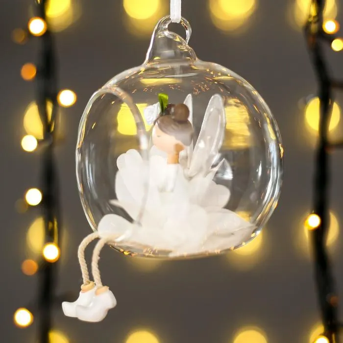 Сувенир полистоун "Фея-бабочка, в юбке лепестке пушок, в шарике" 9х8х10 см — Характеристики