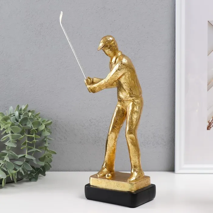 Сувенир полистоун "Гольфист - профессиональный удар" золото 16х9,5х35 см — Характеристики