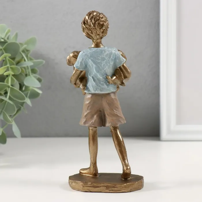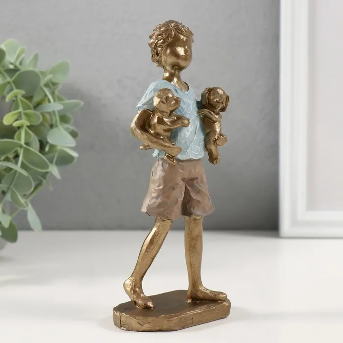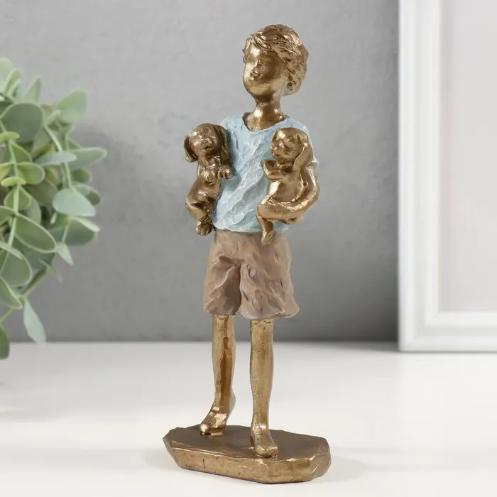 Сувенир полистоун "Мальчик со своими любимцами - щенками" 7,5х4,5х16,5 см — Характеристики