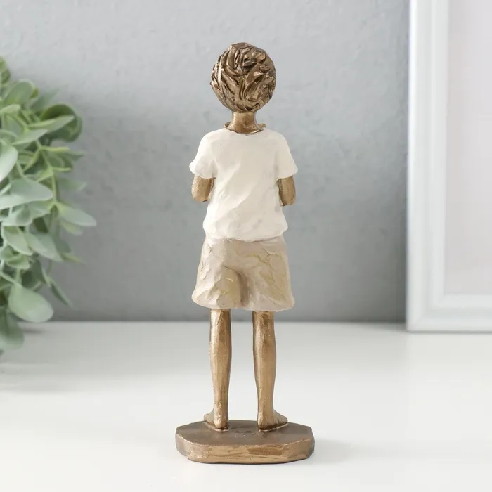 Сувенир полистоун "Мальчишка с котом" бронза, бело-песочный 5,5х5,5х16,5 см — Характеристики