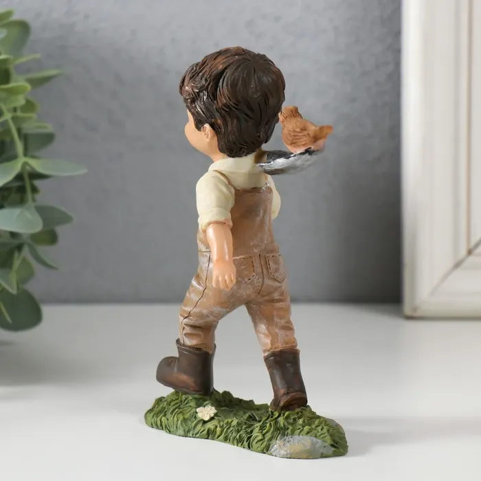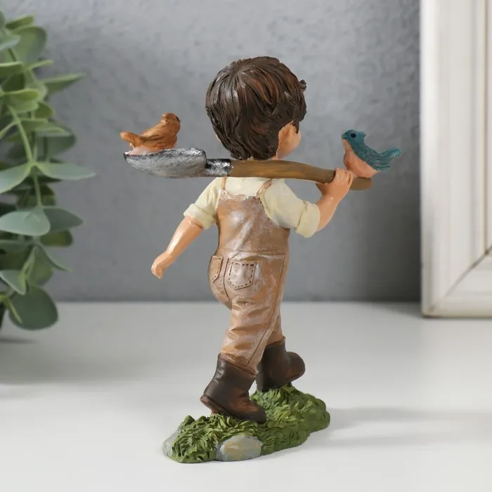 Сувенир полистоун "Мальчишка с птичками на лопате" 10х4,5х12,5 см — Характеристики