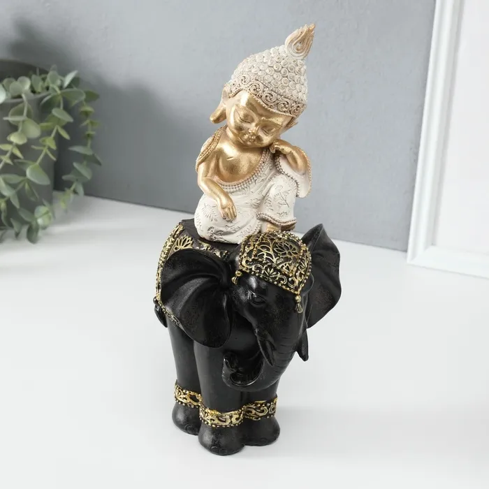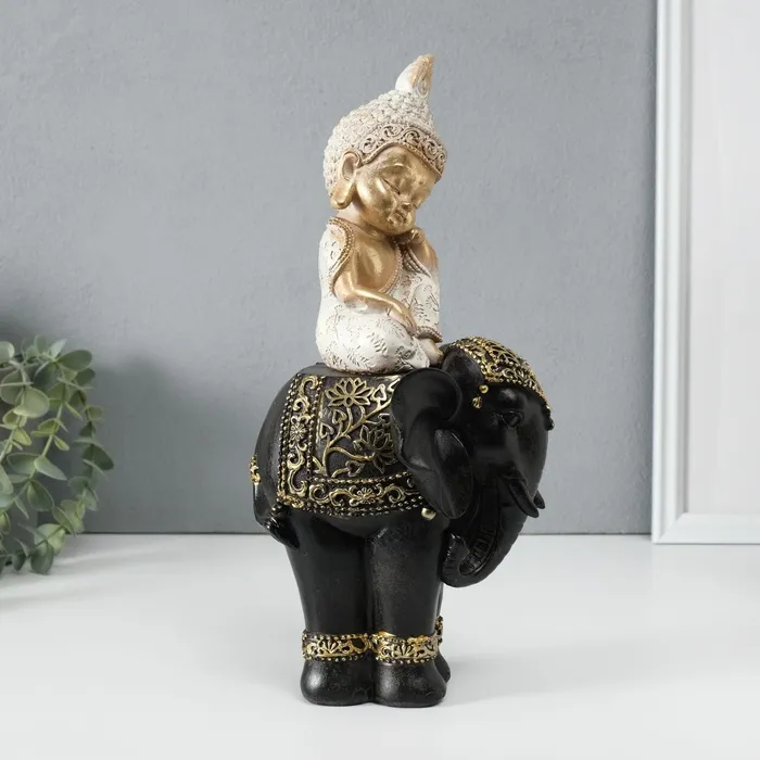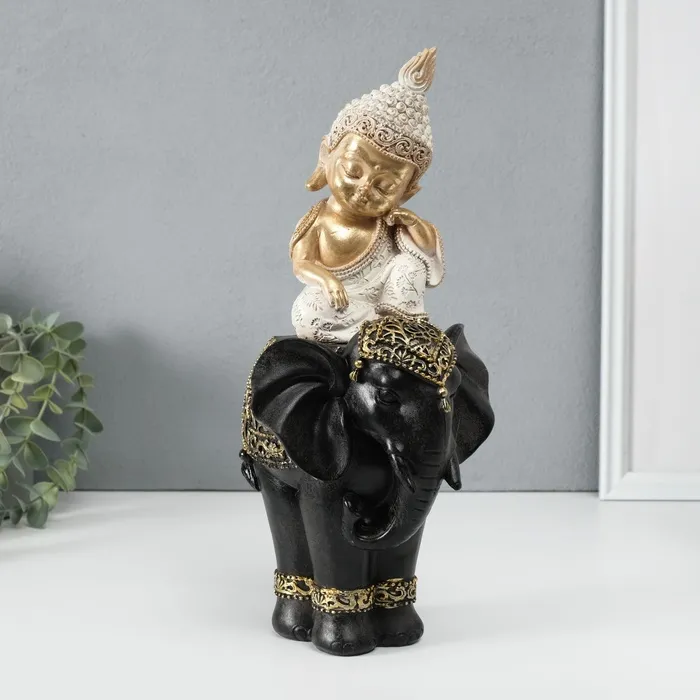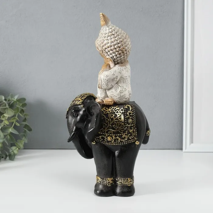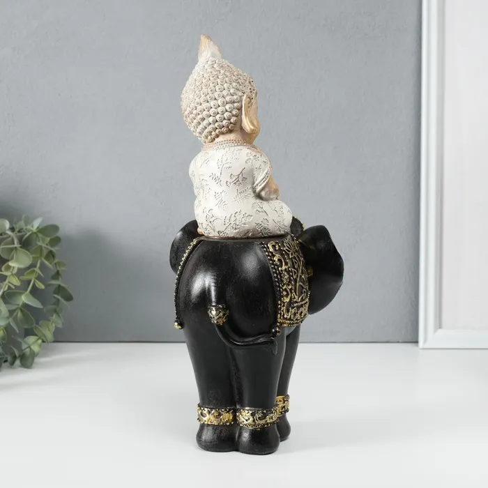 Сувенир полистоун "Маленький Будда на чёрном слоне" 14х14х30 см — Характеристики
