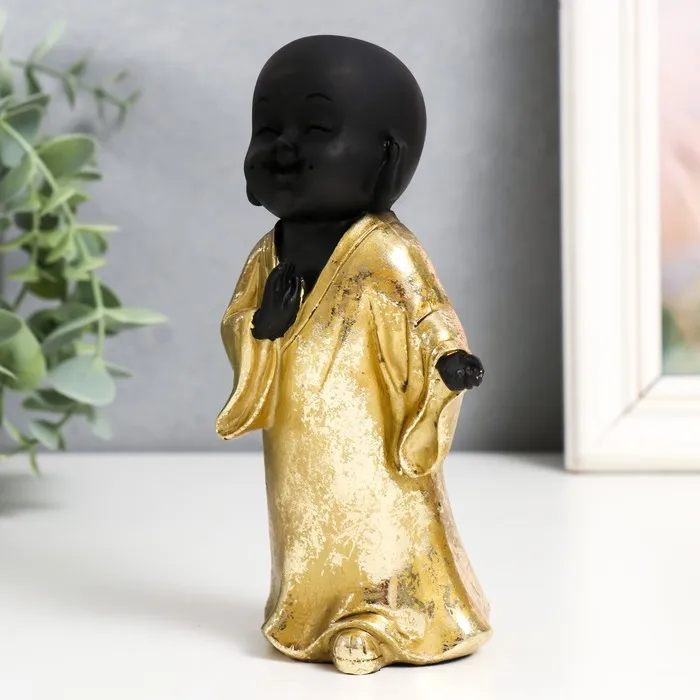 Сувенир полистоун "Маленький Будда в золотом. Приветствие" МИКС 7,5х5,5х15 см — Характеристики