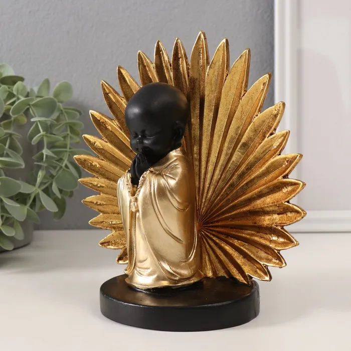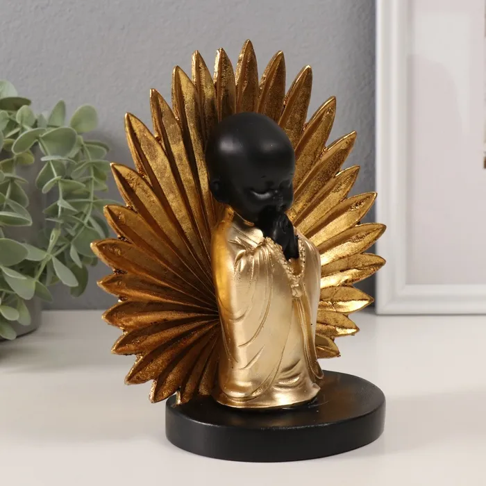 Сувенир полистоун "Маленький хотей - молитва. Пальмовый лист" золото и чёрный 18х9х18 см — Характеристики