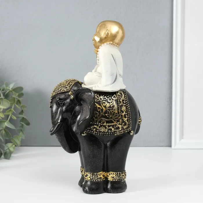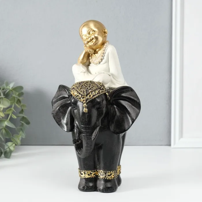 Сувенир полистоун "Маленький весёлый Будда на чёрном слоне" 14х14х26 см — Характеристики